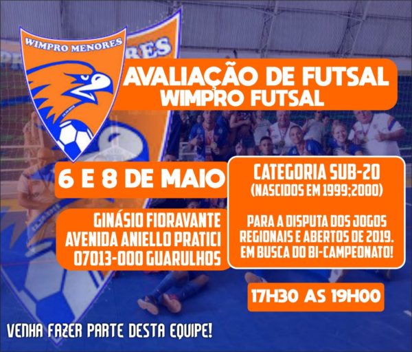 Na próxima semana, acontecem as seletivas da AD Wimpro para a categoria sub-20 (atletas nascidos nos anos de 1999 e 2000).
