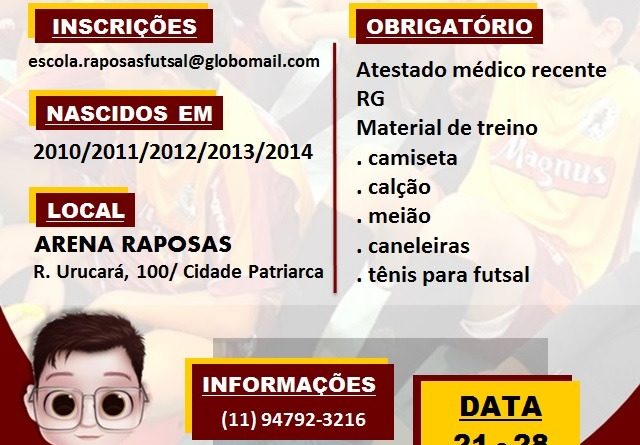 Ler maisVisando a temporada de 2020, a Associação Esportiva Raposas da Leste estará realizando avaliações para as categorias iniciais (sub 07/08/09/10)