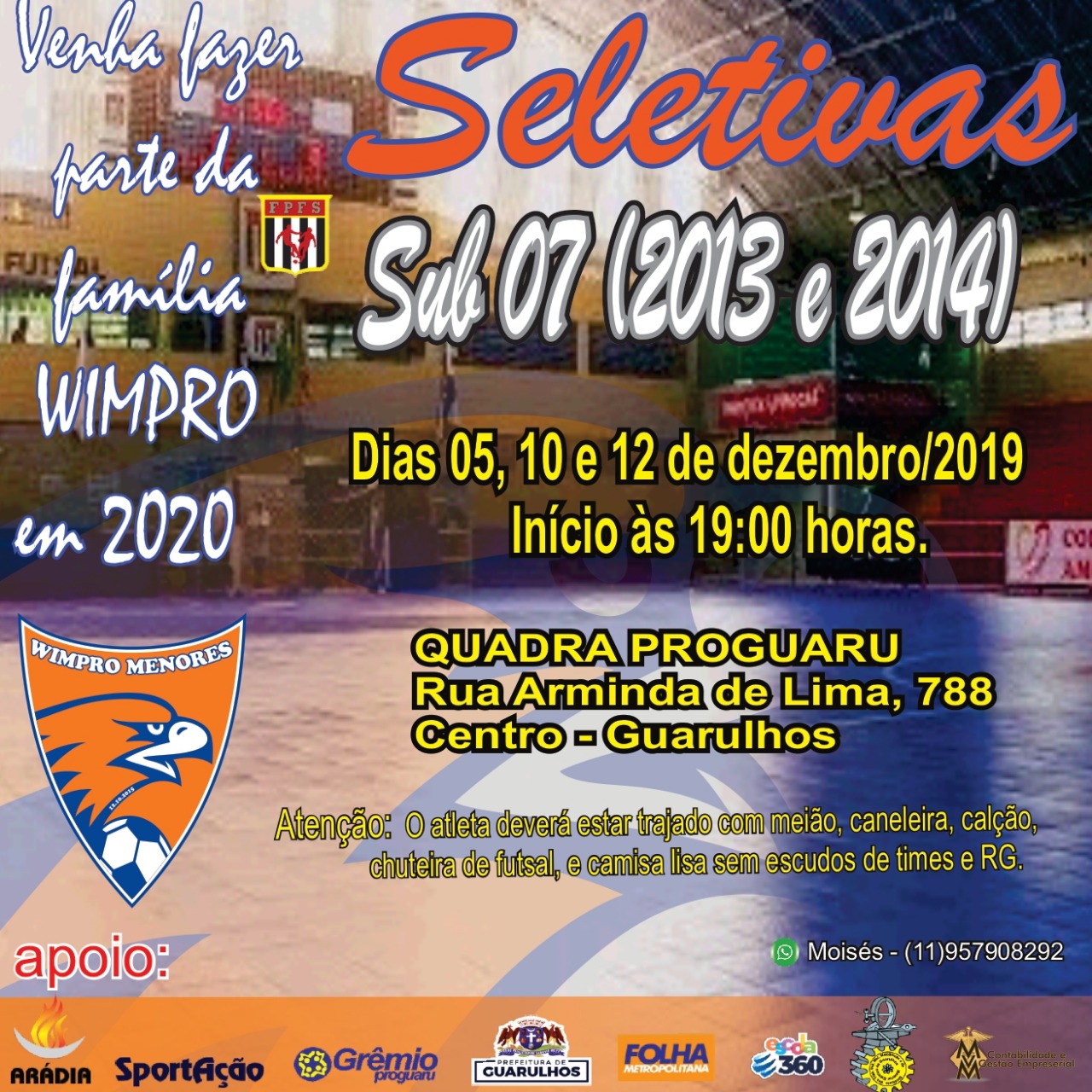 WIMPRO MENORES GUARULHOS ABRE SELETIVAS PARA 2020 EM TODAS AS CATEGORIAS